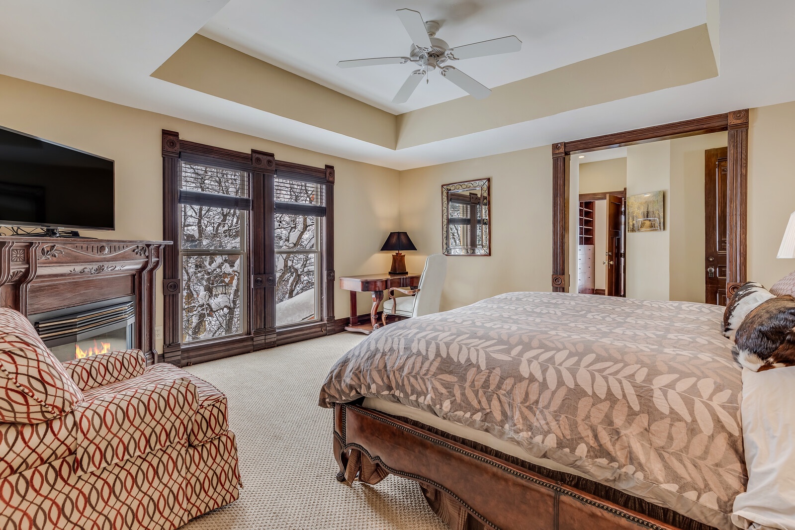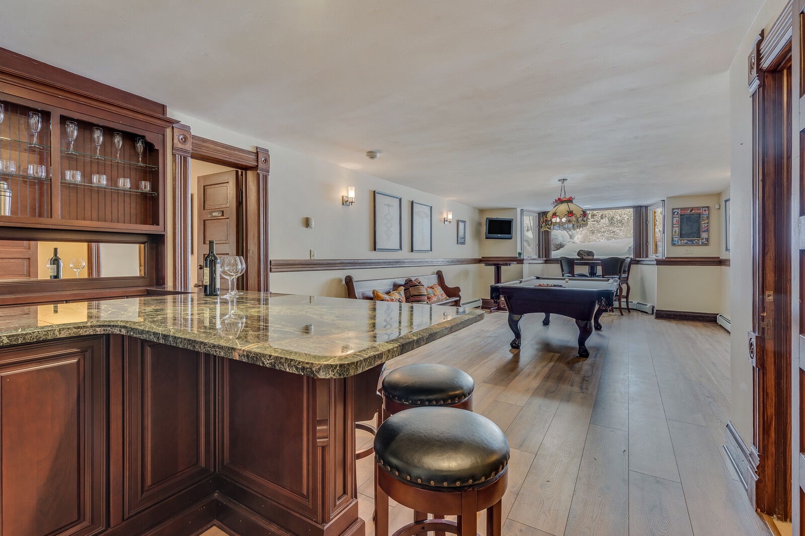 Step inside The Victorian and be captivated by its timeless elegance and thoughtful design. The main level greets you with a grand foyer leading to a chef's kitchen with granite countertops, a spacious dining room, and a living room featuring a Tiffany mantle gas fireplace and Steinway piano. This floor also includes a large bedroom with an en-suite bath, a convenient boot dryer room, and a shower room to warm up after a day on the slopes. The lower level is an entertainment haven with a game room, pool table, wet bar, and a theater for movie nights. A guest suite with its own kitchen, living area, and outdoor access offers privacy and comfort. Ascend the carved staircase to the second floor, where two master suites await. One boasts a gas fireplace, clawfoot tub, and private patio, while the other offers mountain views and luxurious furnishings. The third floor features a library, a kid's TV and game area, and two additional bedrooms, making it a perfect space for all ages.
