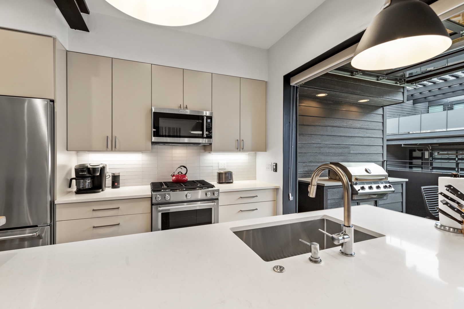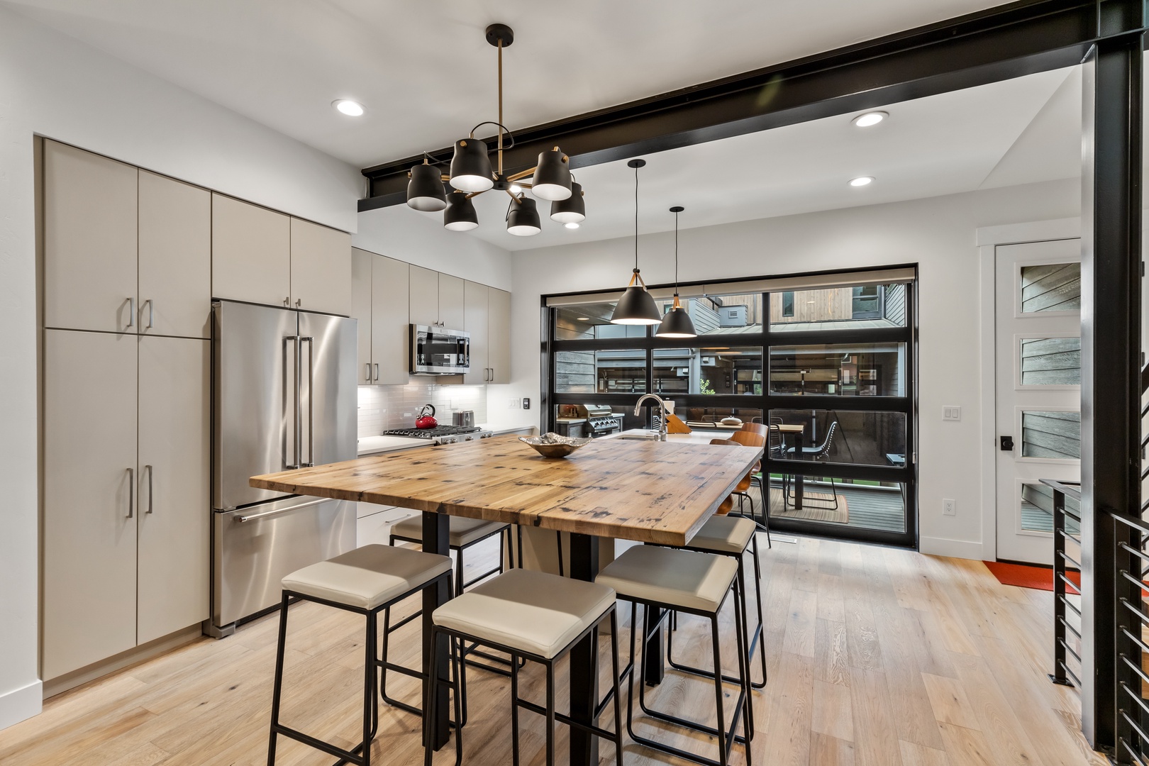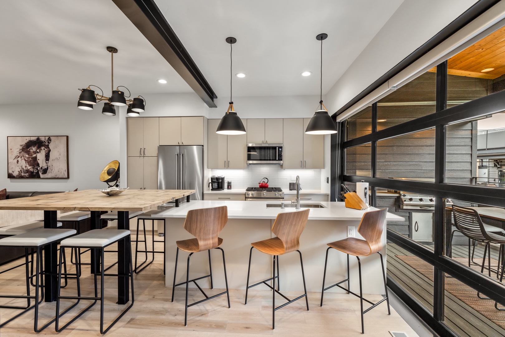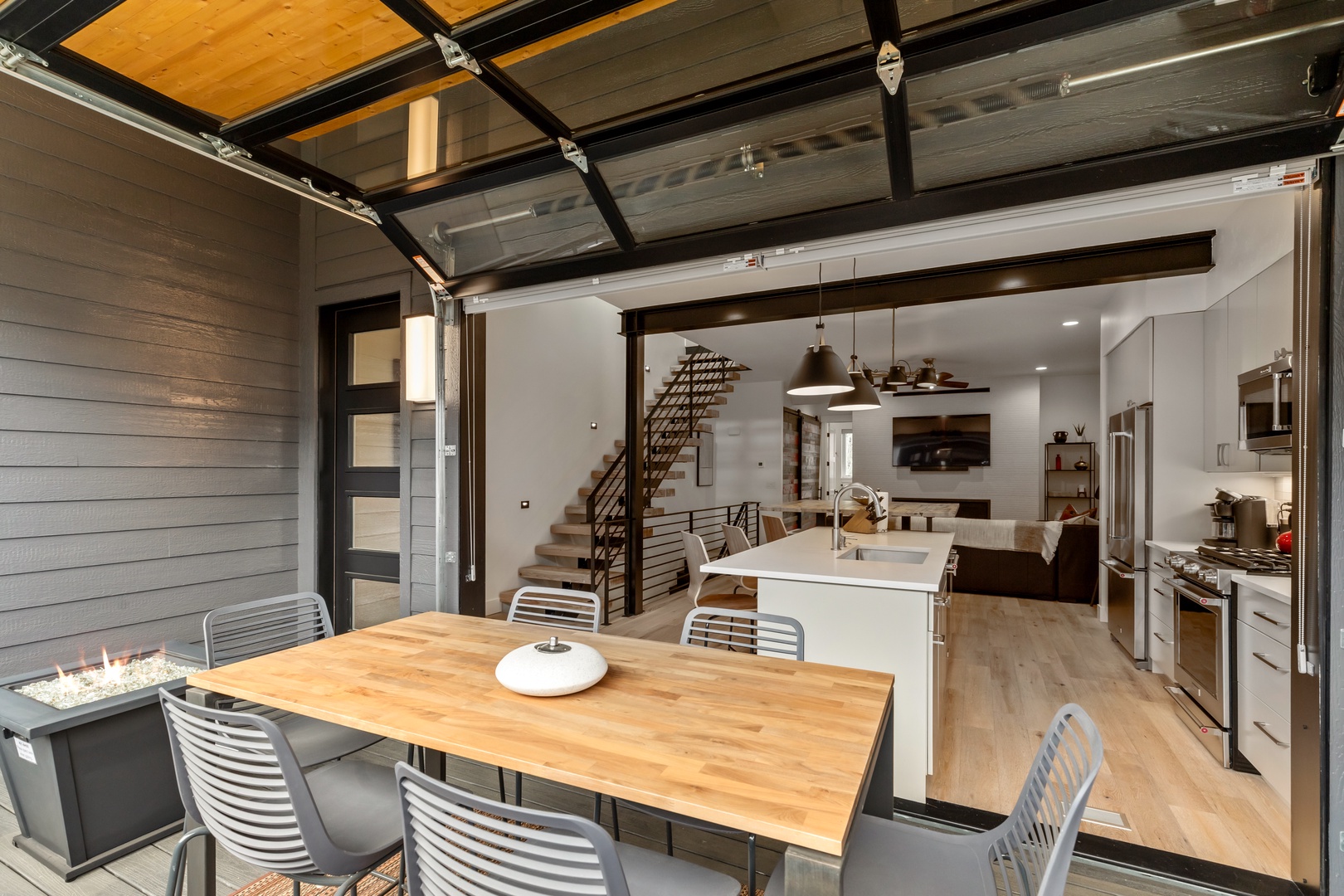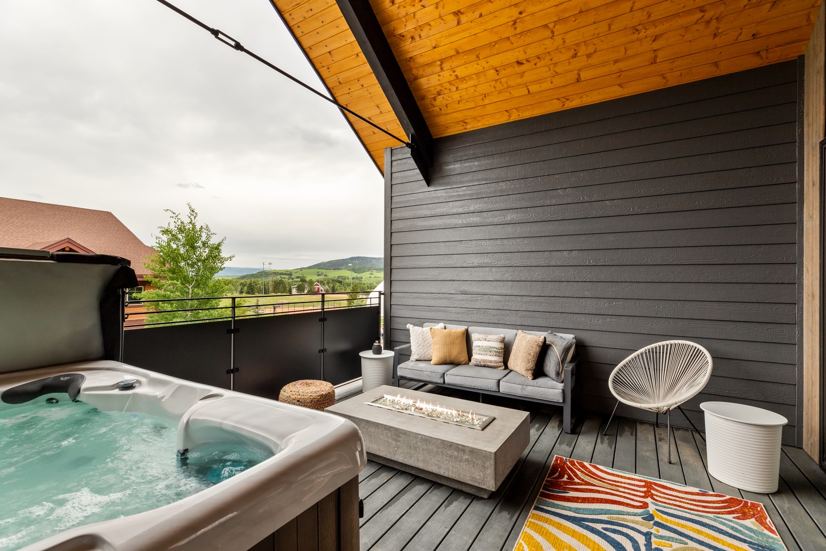 Roll up the garage-style patio door and embrace the fresh mountain air. Enjoy al fresco dining on the outdoor grill and savor the breathtaking views of the surrounding mountains. For the ultimate relaxation, retreat to the private spa oasis on the 3rd-floor balcony and soak in the panoramic vistas while watching the stars.