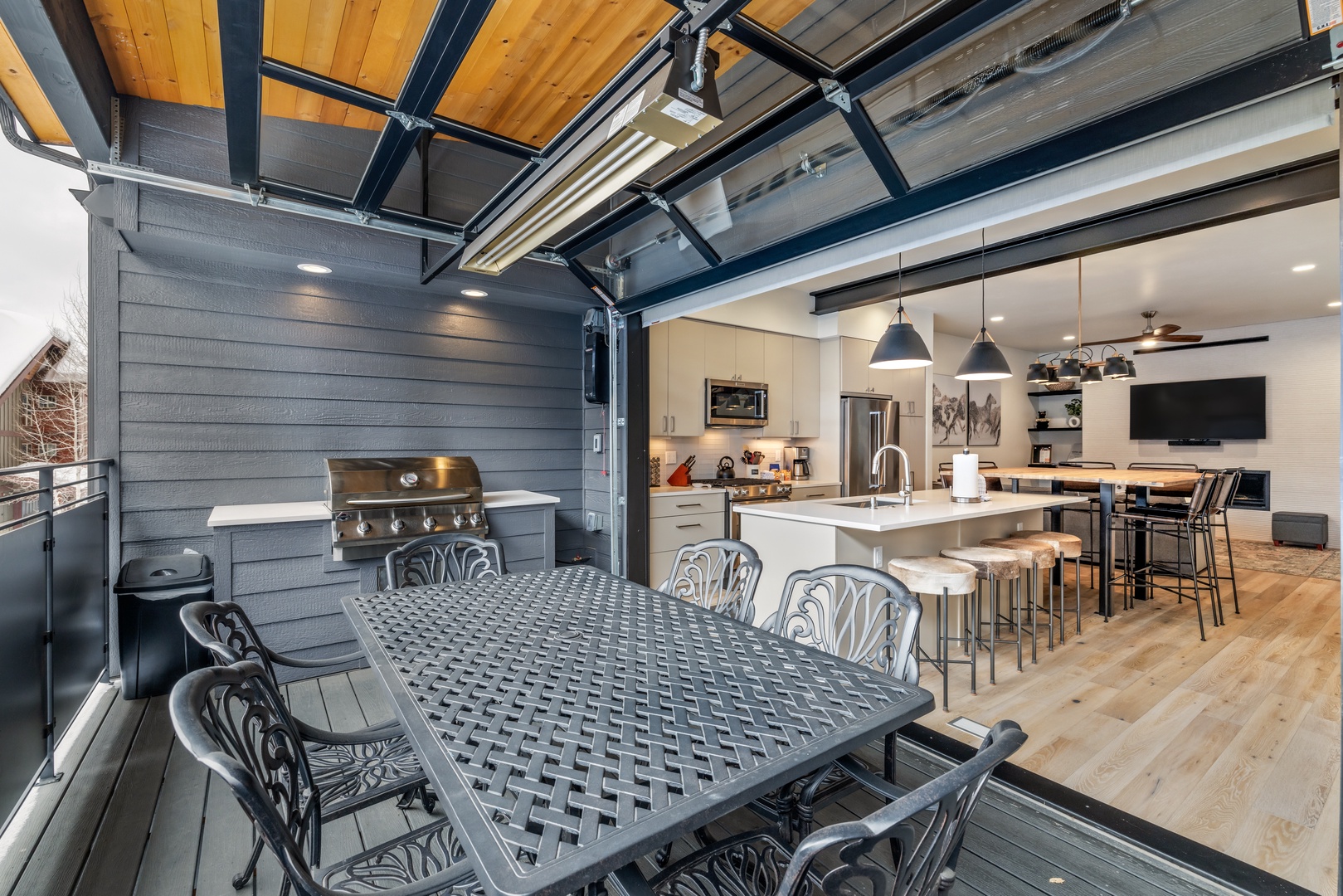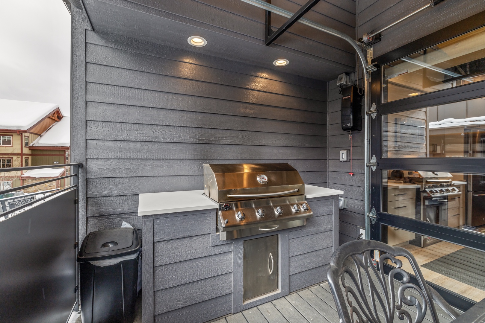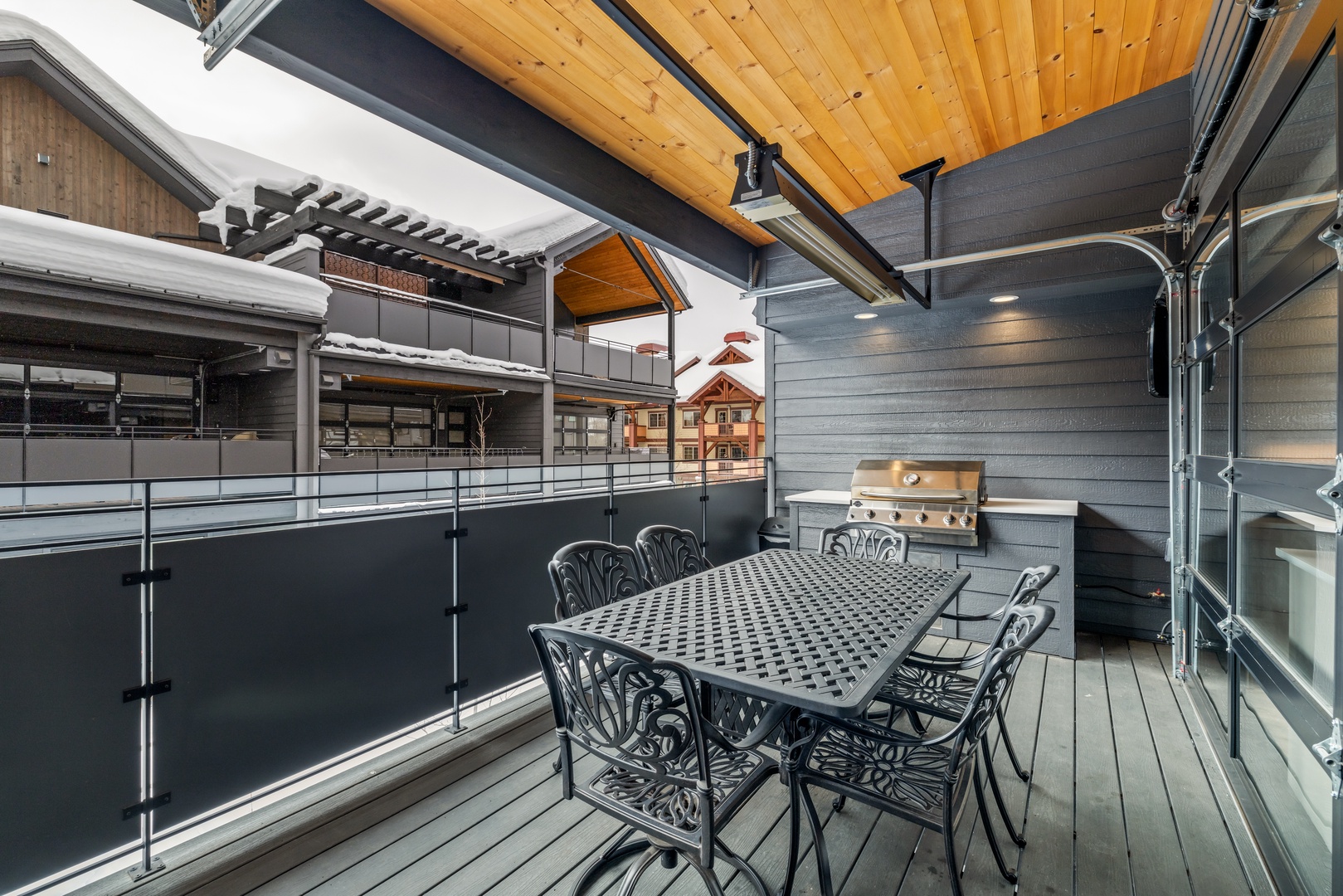 From morning coffee in the crisp mountain air to evening BBQs under the stars, the outdoor spaces are designed for gathering and making memories. The main-level deck is just off the living area and features a built-in BBQ grill, outdoor dining table, and comfortable seating — perfect for family meals in the fresh alpine air or relaxed evenings with friends.