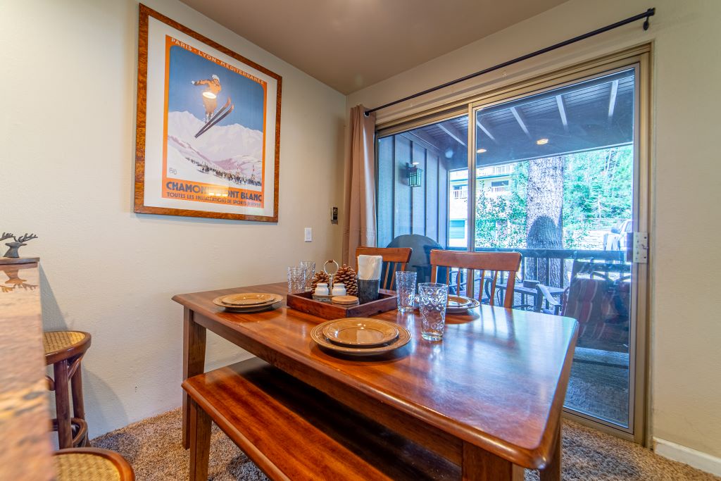 by JanePlace looks exactly like how it looks in the pictures. Very clean (which is what you want for COVID times) and spacious enough for 4 people and a dog. Location is right in Mammoth village, so everything is very close to walk or drive to. They have a huge TV (plus an extra one in the half bedroom), and included Netflix and Disney+! They provided us with a goodie basket with chips, hand sanitizer, granola bars, etc. Easy communication with hosts. 10/10 would recommend .
