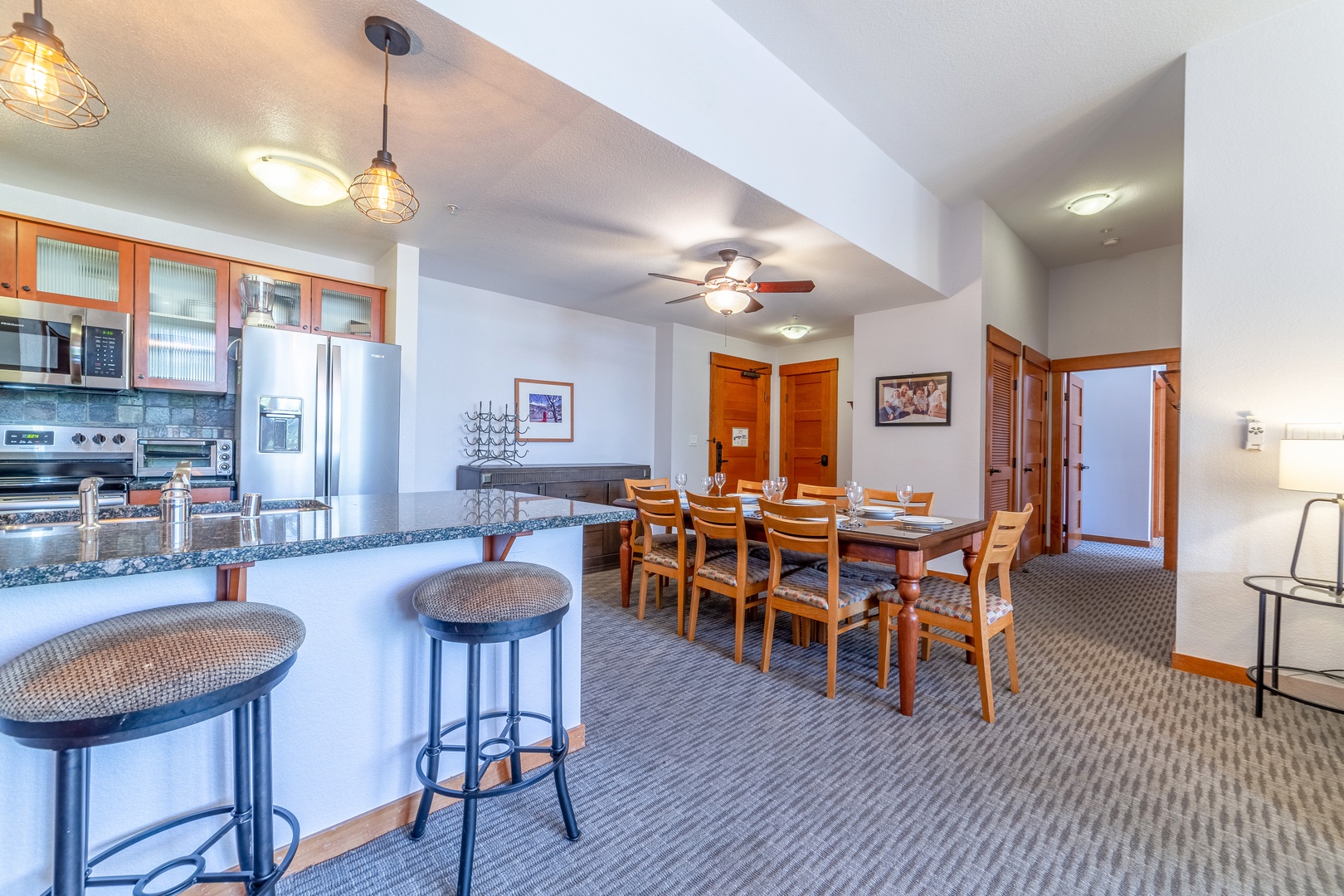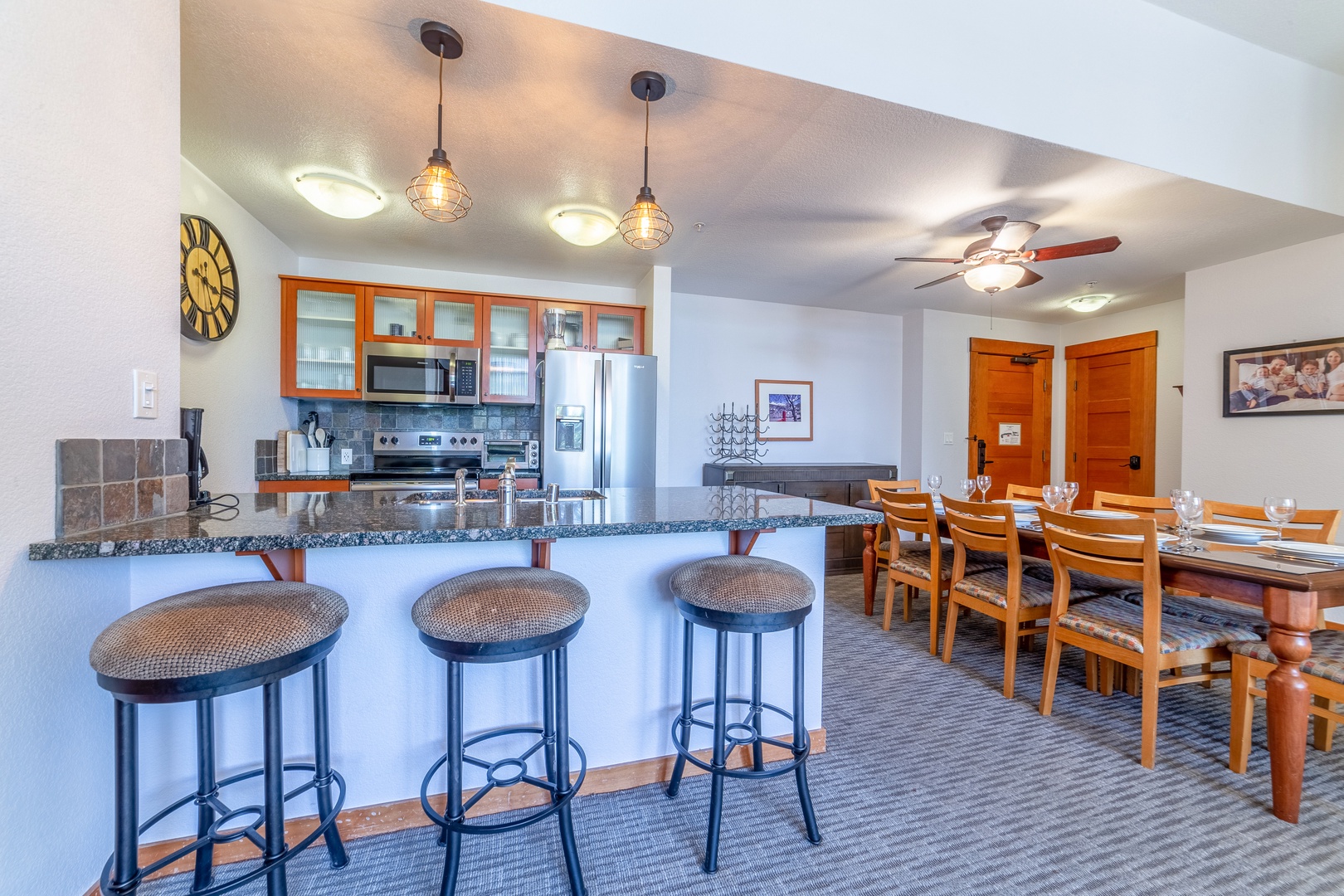 by Daniel KlineOur New Favorite Place to Stay in the Village! We've been staying in the village for years and just discovered this condo. The floorplans of the 3 bedrooms are all pretty similar, but the furnishings and amenities are what sets this one apart. The Wifi was flawless (let's face it, a must these days) and the appliances all brand new. The family room featured a massive leather sectional couch that could comfortably seat 10 and a smart TV that was enormous. Super fun to stream youtube ski and mountain bike videos and comedy shows on in the evenings. The other master bedrooms each had similar style TVs. The kids room had a really cool bunk bed with queen mattresses on top and bottom (didn't even know they made those), stairs to get up to the top and high ceilings so no head bonking. A pair of TVs were positioned in the bunk room so top and bottom bunkmates could watch the same program. All the towels and bedding were super plush and cosy. We also really liked the location. Normally we look to stay in top floors for view purposes, but the place has a huge window in the family room with a fun view of the trees and mountains. The first floor location was nice, I must admit, for coming and going without having to hassle with an elevator every time. We stayed in June, but I can imagine with skis and boards, waiting for a crowded elevator to come at the same time everyone else is trying to get out could be a pain. Our bikes were all stored securely in a bike locker that opens with the roomkey from the garage (we were a little worried about that in a condo), so that was a nice surprise. For those familiar with the village, the convenience of being able to walk everywhere and not having to deal with the car is a major known plus of staying right on property--pools, hot tubs, grills, restaurants, entertainment, fitness centers, grocery stores and shopping all right there. Of course, the Village Gondola is the bomb in the winter, but even in the summer it's our preference to stay close to it all. Overall, awesome place. We will be back!