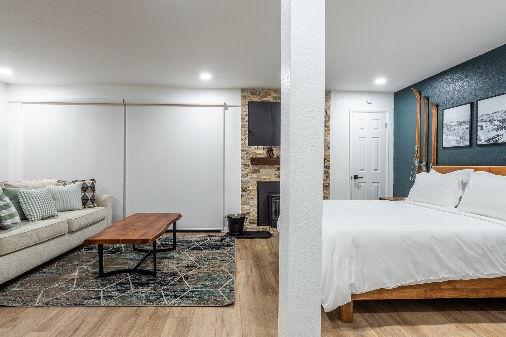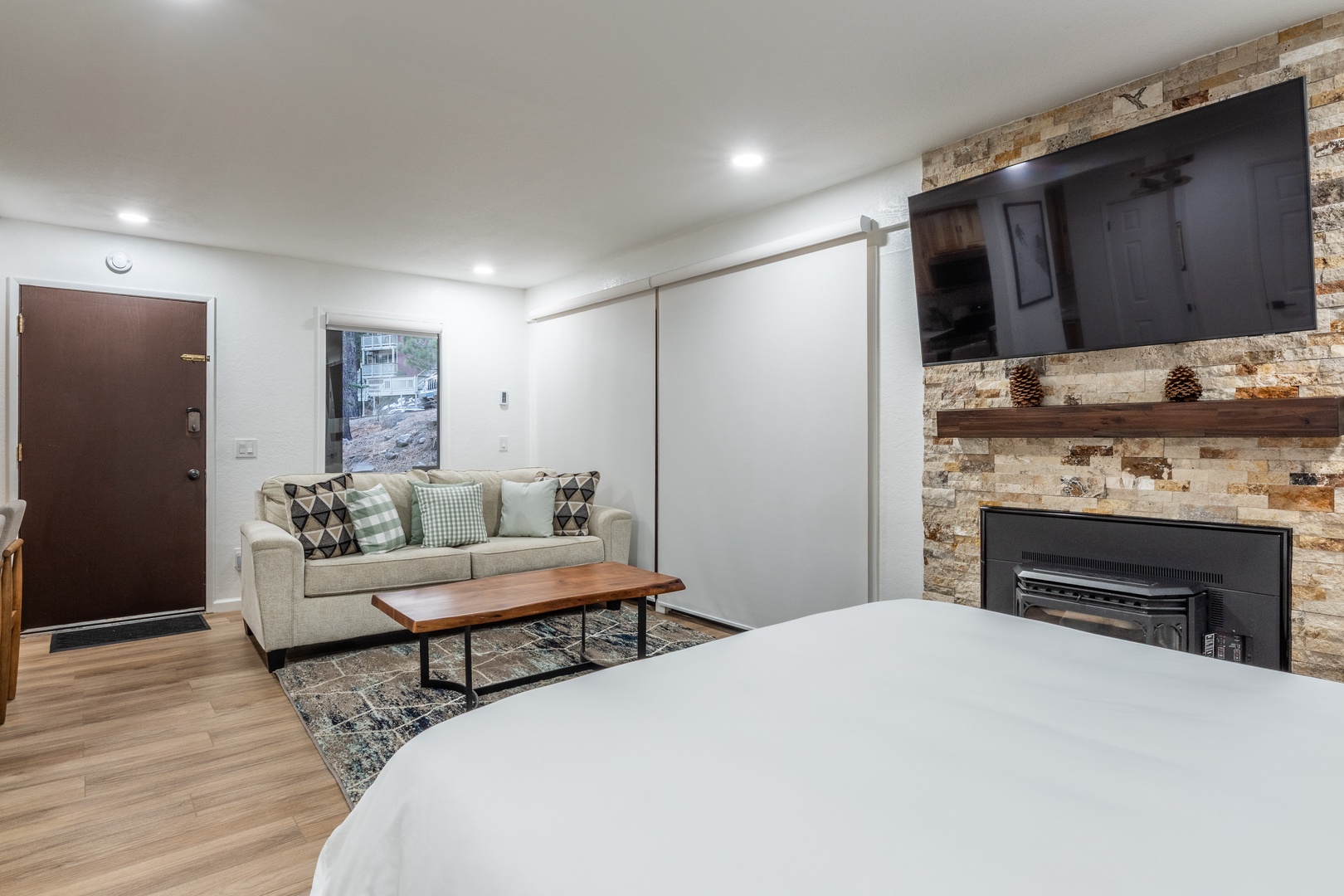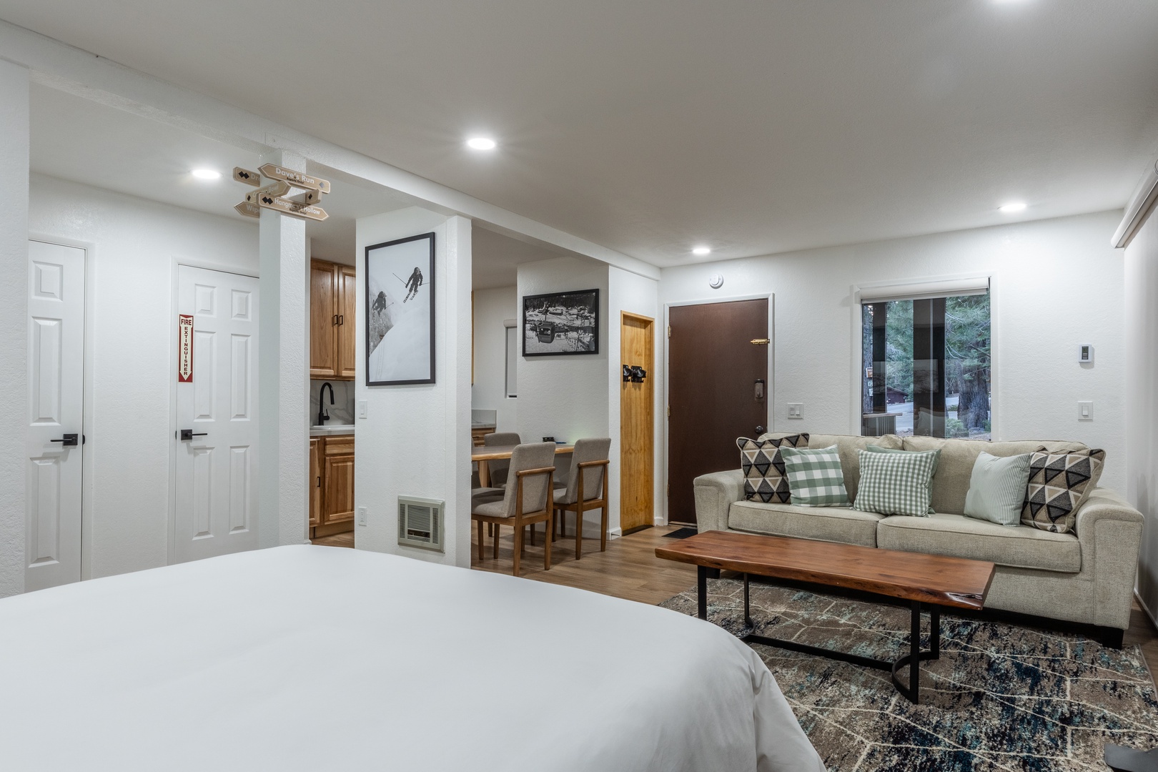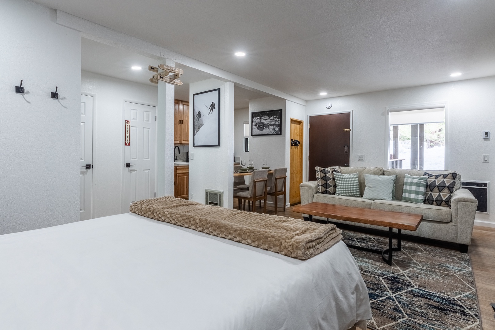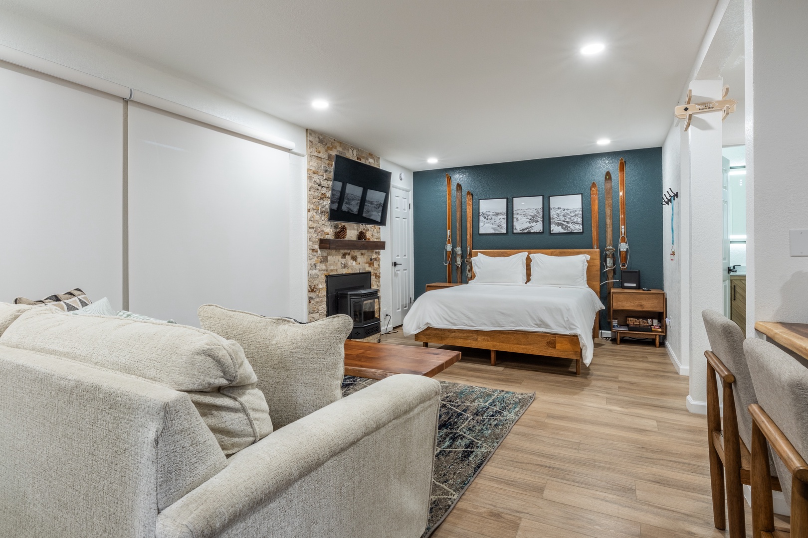 This well-appointed studio condo comfortably sleeps up to 4 guests with a plush queen bed and a cozy queen sofa sleeper. The modern full bathroom is clean and functional, perfect for refreshing after a day on the slopes. Inside, you'll find warm alpine décor, a fully stocked kitchenette, and everything you need to feel at home, whether you're here for a weekend or a week.