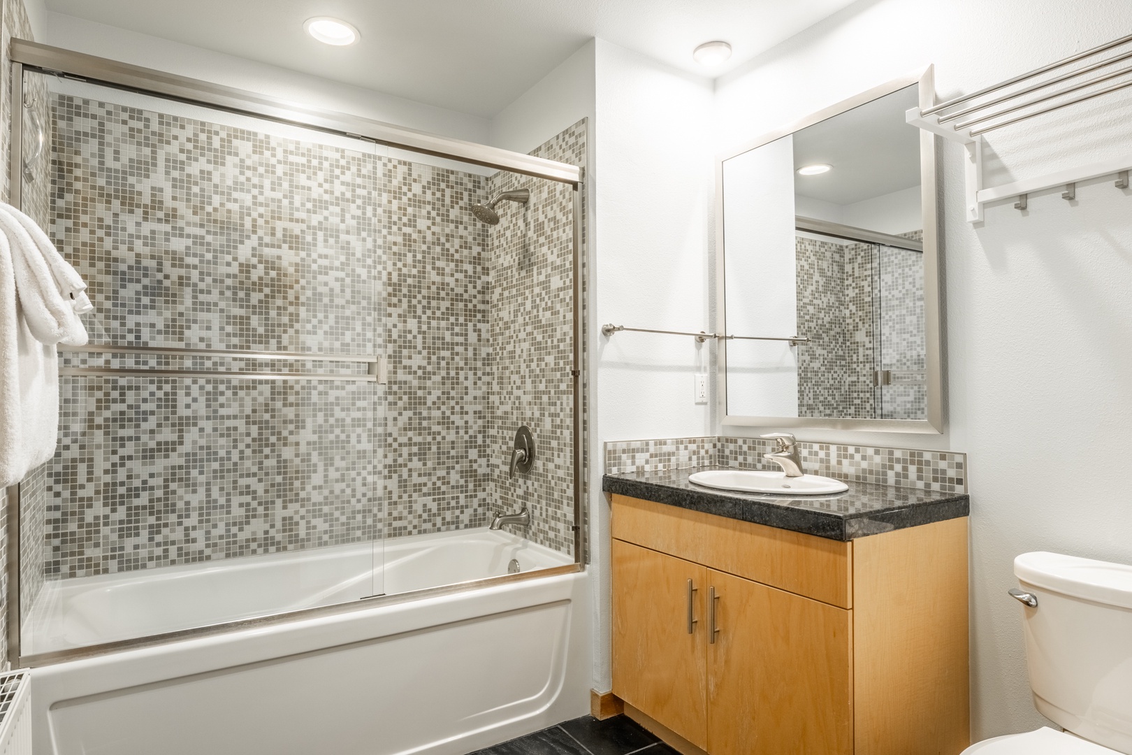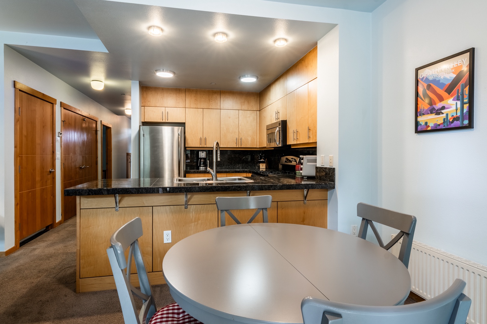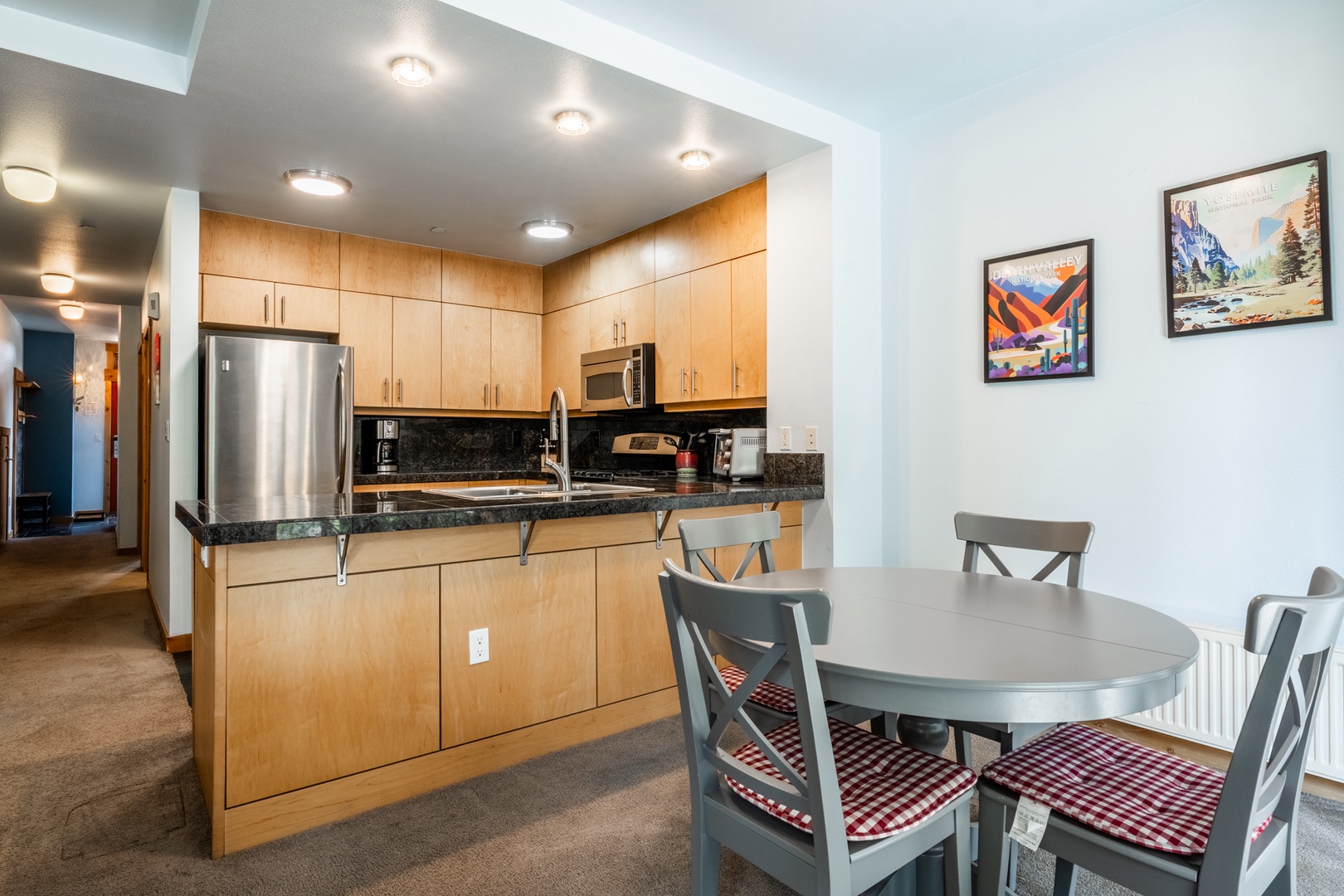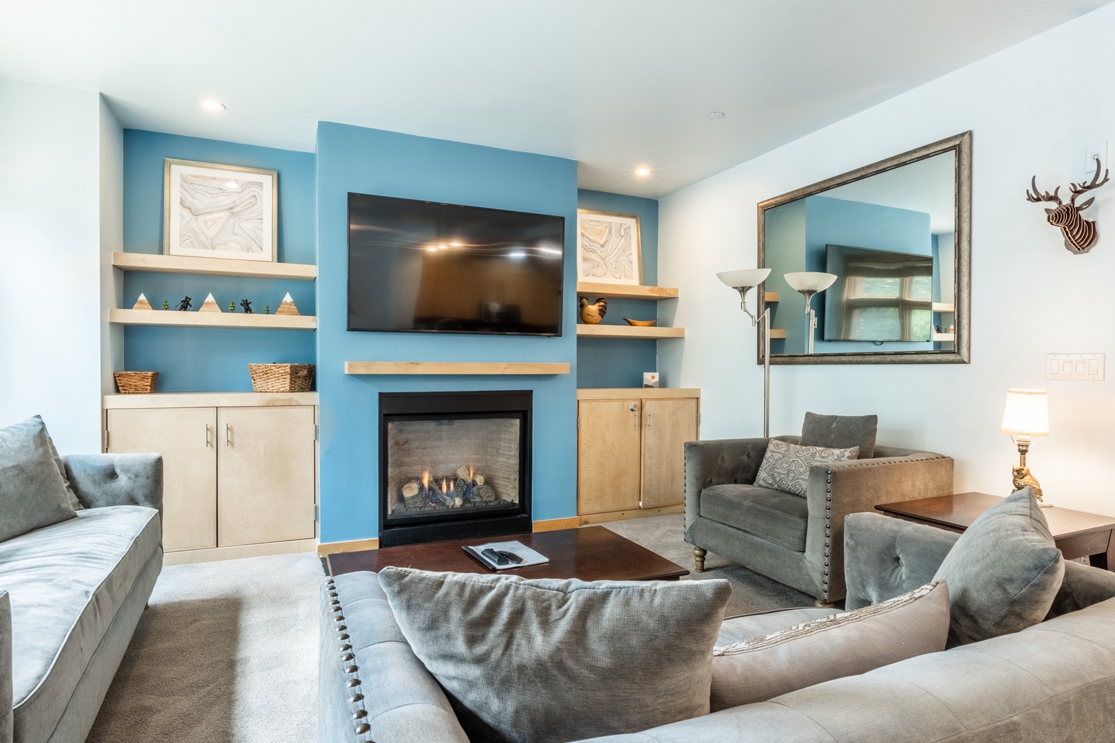 Among Mammoth Lakes vacation rentals, this modern condo stands out for its golf course frontage, upscale interior, and resort-style amenities. No more trudging up flights of slippery steps in ski boots! Access from car to condo without stairs! Just a short drive or shuttle ride to Eagle Lodge, scenic trails and lakes, and miles of adventure, it’s your ideal home base for every season.