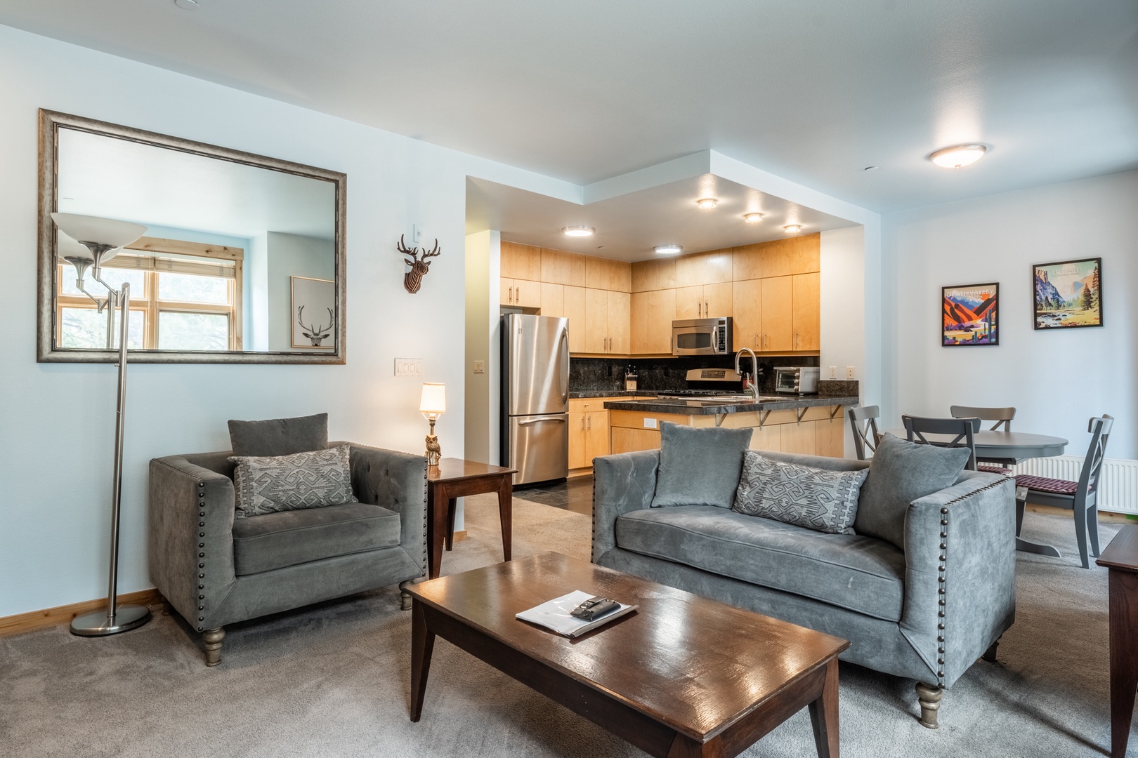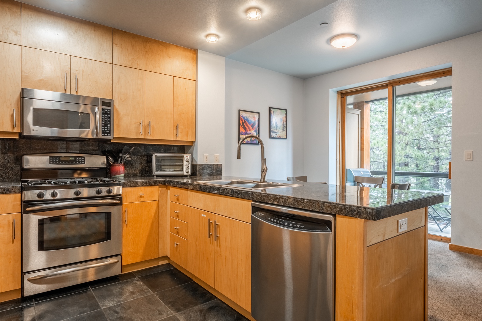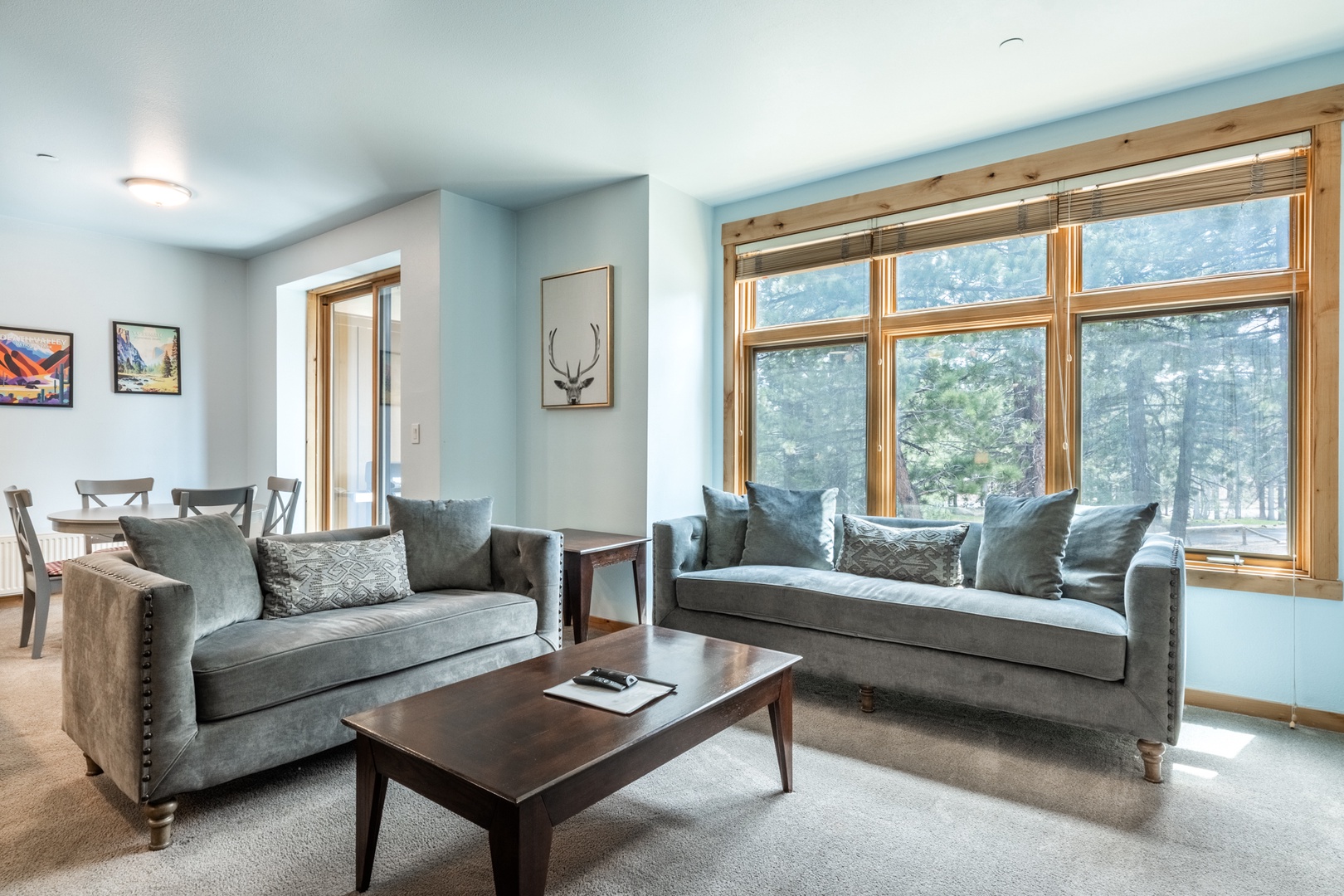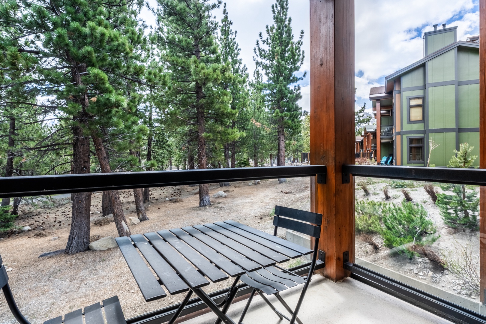 Welcome to your modern mountain escape in the upscale Solstice complex of Mammoth Lakes. This stylish, ground-floor 2-bedroom, 2-bath condo is ideally situated near the Sierra Star Golf Course. Through the wooded greenbelt are gorgeous views of rolling fairways in the summer, peaceful snowfields in the winter, and the majestic Sherwin Mountains in the distance. Designed to accommodate up to 4 guests, this sleek, single-level retreat combines comfort, convenience, and unbeatable location—just a short walk to the free mountain shuttle or three minute drive to the lifts, or the lively atmosphere of The Village.