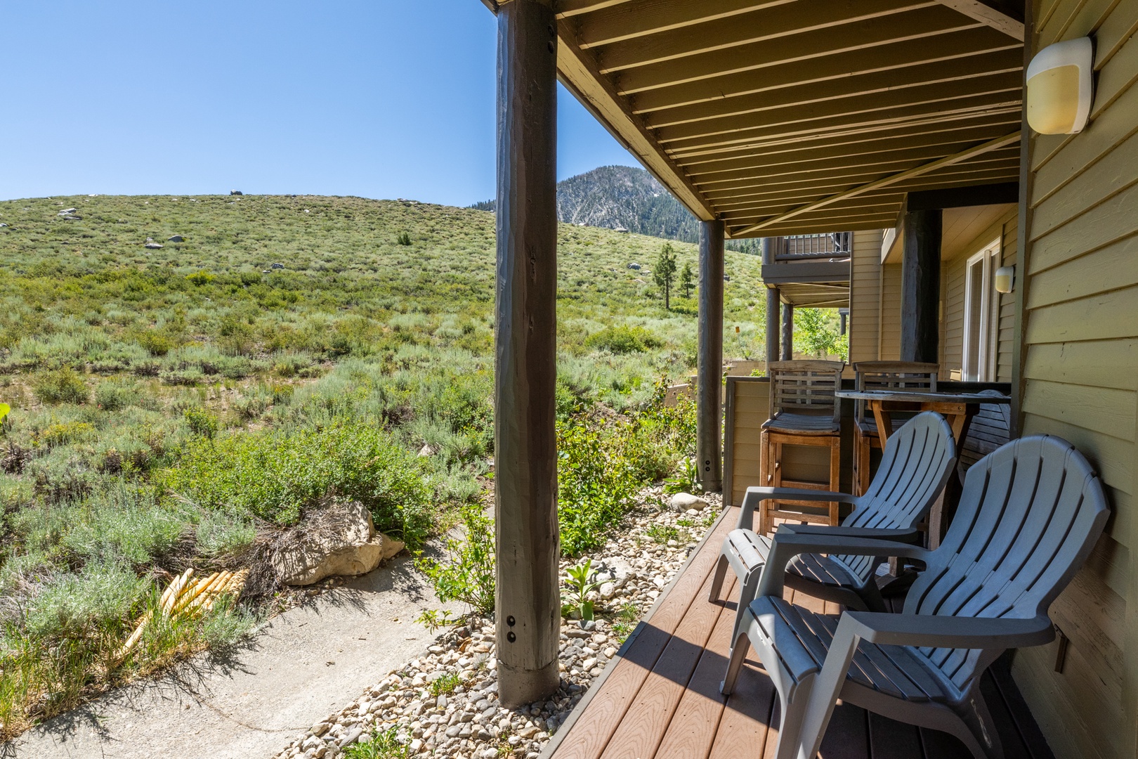 Take in Mammoth’s beauty from your private deck overlooking wide-open meadows and the Sherwin Mountains. Start your day with coffee at sunrise and end it by grilling dinner on the BBQ in the crisp mountain air. The lower-level patio offers an additional outdoor space for quiet relaxation. Guests also enjoy access to Snowcreek’s community hot tubs, perfect for unwinding after a day of skiing, hiking, or biking.