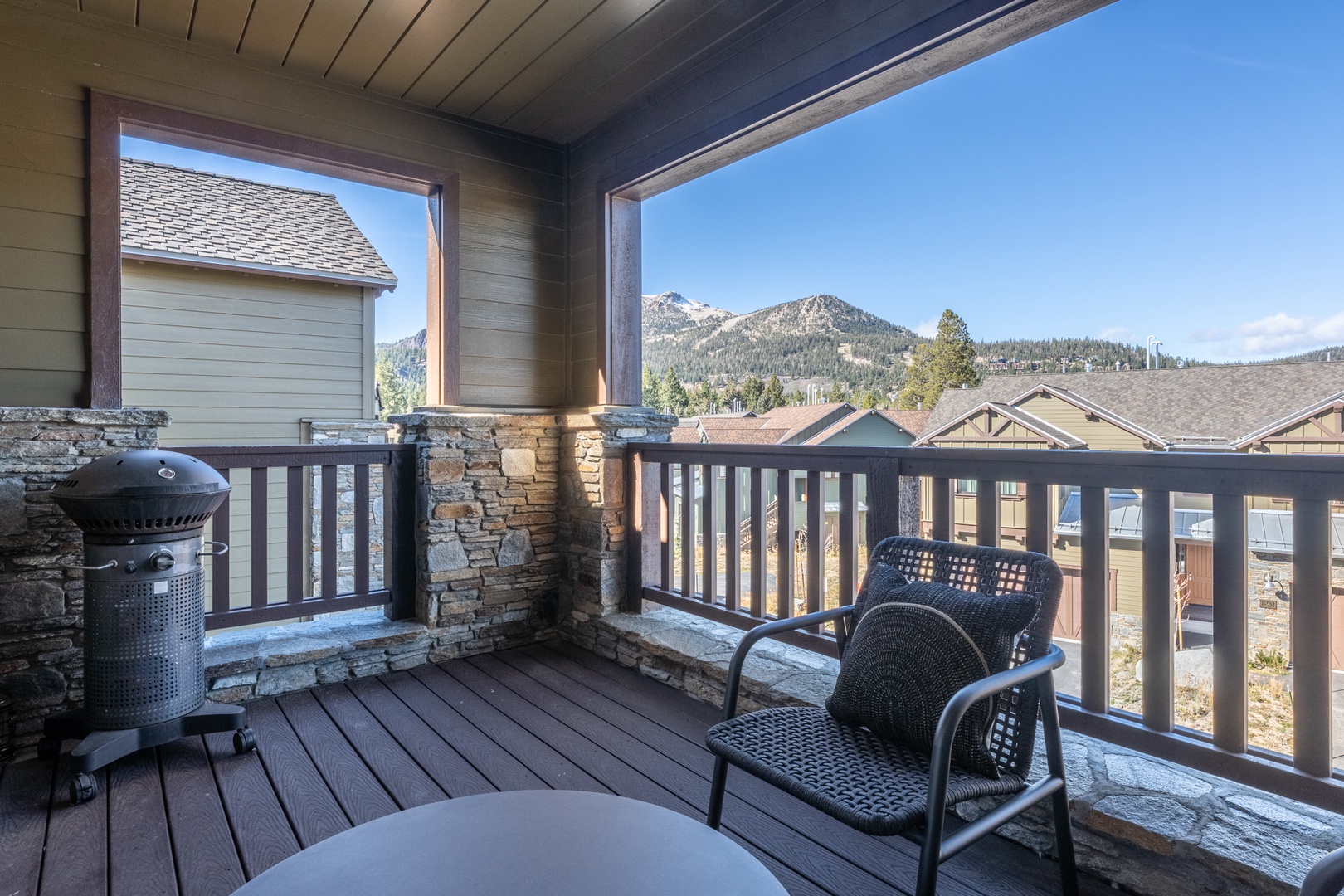 Enjoy Mammoth’s beautiful surroundings from two private decks. The main covered deck off the living area features comfortable seating, a BBQ grill, and mountain views—ideal for morning coffee or après-adventure relaxation. It’s perfect for morning coffee, casual outdoor meals, or relaxing after a day on the slopes or exploring nearby trails. The second lower-level deck offers a quiet outdoor space with direct access from the bedrooms, creating a peaceful spot to enjoy the crisp alpine air. Guests also have access to community amenities including a spa, rec room, and gym, ideal for staying active or winding down at the end of the day. Set within the peaceful and well-maintained Creekhouse neighborhood, the home provides convenient access to walking paths, bike routes, and open natural spaces, creating an outdoor setting that enhances every stay.